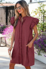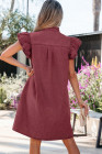 Red Sandalwood Frilled Detail Button Down Ruffle Short Sleeve Denim Mini Dress